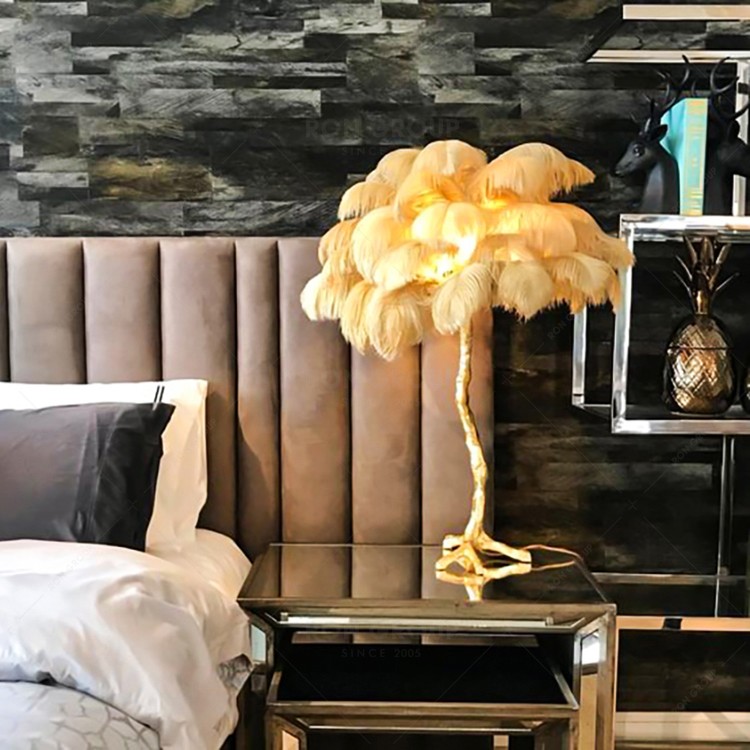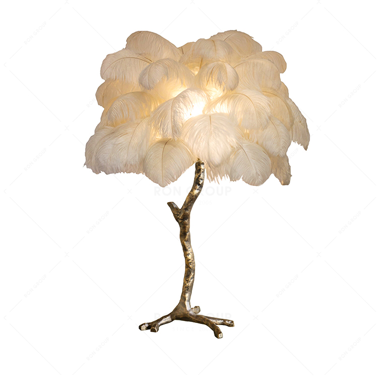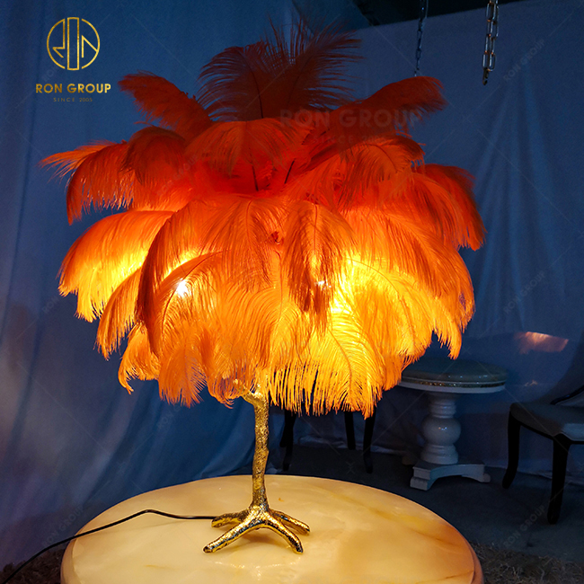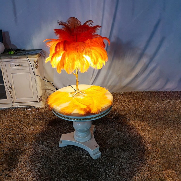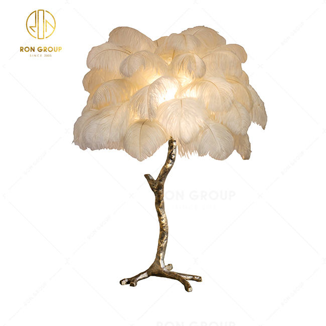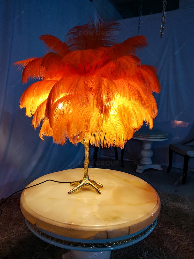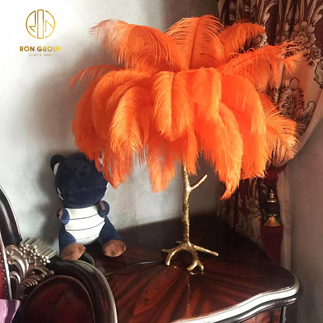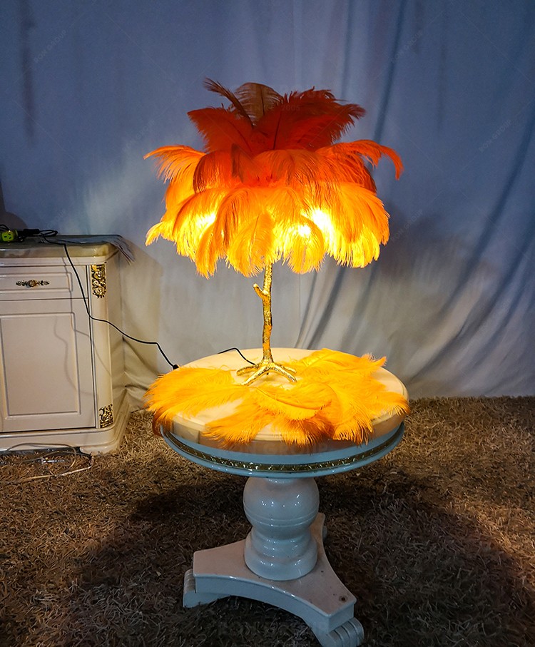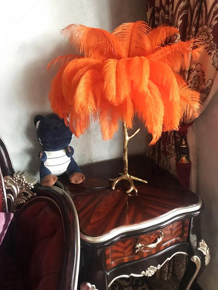 Ostrich Feather Hotel Bedroom Design Indoor Lighting Modern Chandelier Light Table Lamp